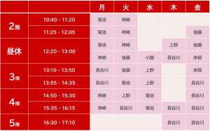 英語学習サポートでは、以下の教員がセッションを担当しています。