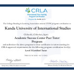 Academic Success Center > Information > お知らせ > 神田外語大学が米国のCRLA(The College Reading & Learning Association)に国際的なチューター育成プログラム実施機関として認可されました!